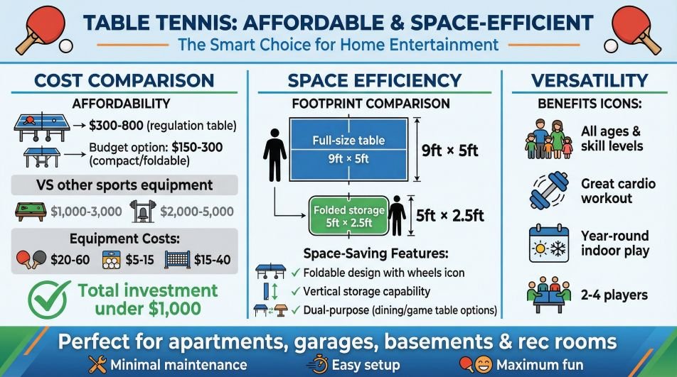 Compared to many sports, equipment is budget-friendly and fits well in home spaces.